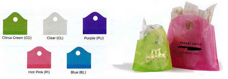 - Our Frosted Wave Top bags are a fun and modern option for retail business owners looking to freshen up their packaging. These bags have circular cut-out handles and expanding bottom gussets to hold just about any light-weight item. Customize these bags with your company name and logo for an eye-catching presentation