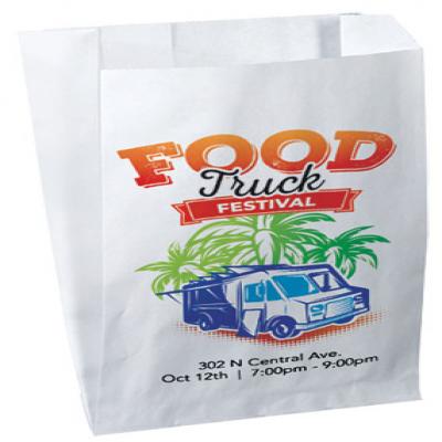 - White 33lb Stock. - Full Color Imprint - FREE 4-color Set-up! - Imprint front side and gusset (if bag has gusset) - 7-10 Day production (once art is approved) plus transit - Artwork uploaded on next page - All art supplied for this product line must be in vector format. *Please note that due to production limitations, there is a 1/2" blank area on the back right side of the bag where the bag is seamed & glued. Full coverage designs may need to be adjusted to account for this. Please reference thumbnail image below.