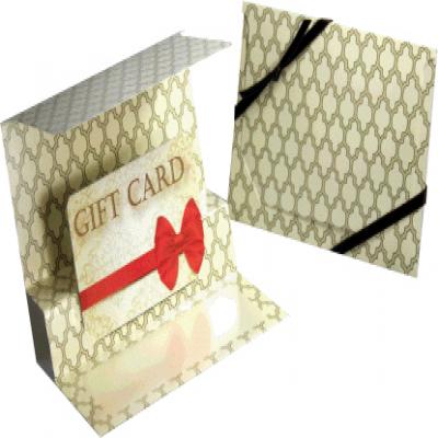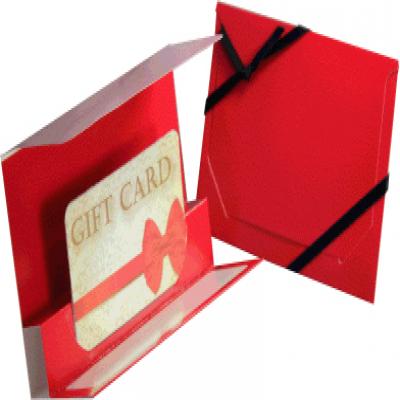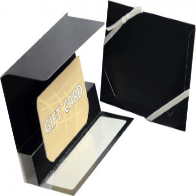 The design features a clean, sleek exterior with a smooth or subtly textured finish, which is available in various designs and colors to suit any occasion or corporate identity. Upon flipping open the folder, the inside reveals a dedicated slot or die-cut panel where the gift card is securely held in place. This precise cut ensures the card stays centered and prominently displayed, preventing it from slipping out or moving around.