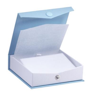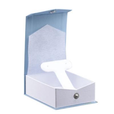 Sleek, modern lines and fashionable colors, the Prim collection radiates youth and freshness. The ribbed texture of this paper box adds depth and sophistication, and the matching snaps show attention to detail to complement your store's image. Available in eight stylish shapes with white suede interiors and optional logo stamping on top. Comes with white sleeve