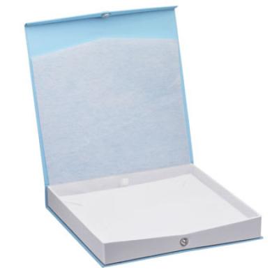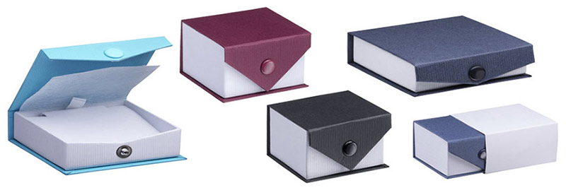 Sleek, modern lines and fashionable colors, the Prim collection radiates youth and freshness. The ribbed texture of this paper box adds depth and sophistication, and the matching snaps show attention to detail to complement your store's image. Available in eight stylish shapes with white suede interiors and optional logo stamping on top. Comes with white sleeve