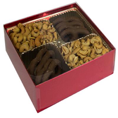 These Boxes with Clear Lids are perfect for pretzels and nuts but have many other possible uses. FDA Approved folding cardboard 4 area divider is available separately. Boxes are sold empty. All boxes & trays sold separately.
