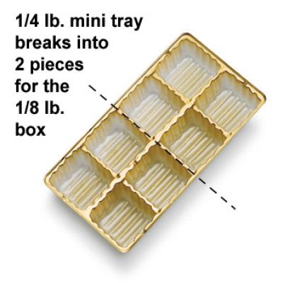 The candy box is designed with versatility in mind, as trays and pads are sold separately. This allows for customizable configurations to suit a variety of confectionery assortments, from chocolates and truffles to candies and other sweets. The interior trays can be selected based on the type and number of candies being packaged, ensuring an organized and professional presentation. Pads can be added for additional protection and to enhance the overall presentation.