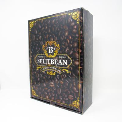 Unique 4 color litho process laminated to E-flute corrugated gives stunning quality results to these shipping boxes. Plate Cost of $95.00 for new artwork