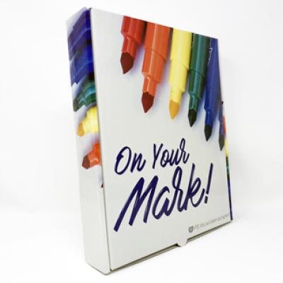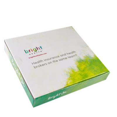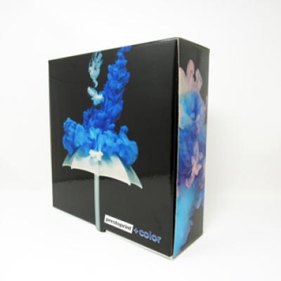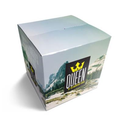 Unique 4 color litho process laminated to E-flute corrugated gives stunning quality results to these shipping boxes. Plate Cost of $95.00 for new artwork